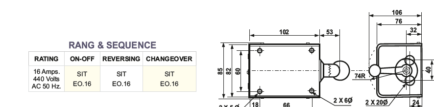 • ET32SH: 32 AMP 440V - Reverse Forward Switch with Steel Handle